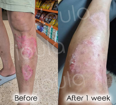 We advised him to stop his steroid cream use. Upon using ioula’s Body Lotion, itchiness was stopped. After just one week of daily usage, healing then began and no new wounds appeared because there was no scratching. Inflammation had stopped and only the flaky skin remained.